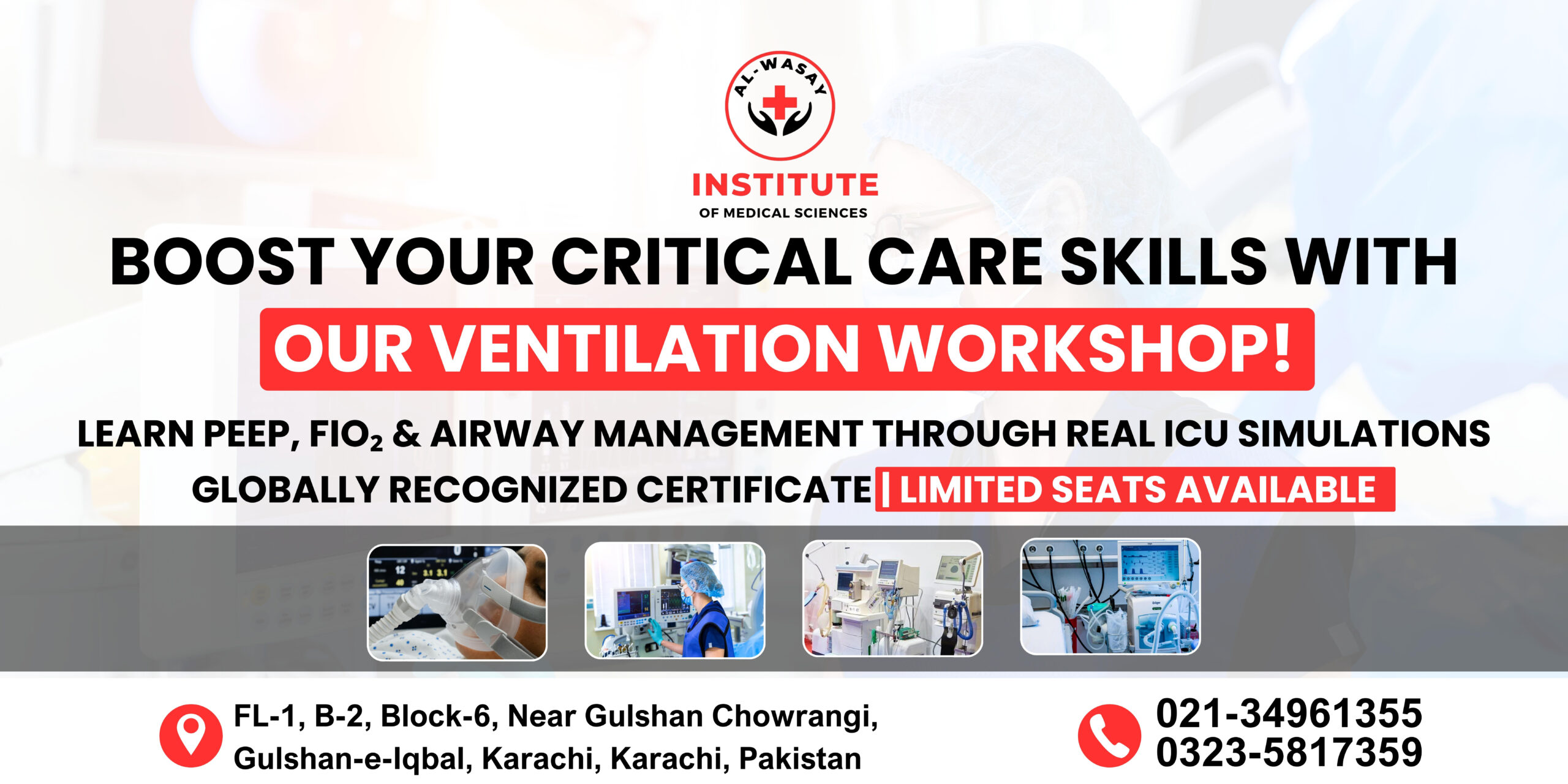 At Al-Wasay Institute of Medical Sciences , we are dedicated to advancing clinical training through interactive workshops, live demonstrations, and simulation-based learning . Guided by experienced trainers, this program bridges the gap between theory and practice, empowering healthcare professionals with the critical skills needed in modern intensive care units.